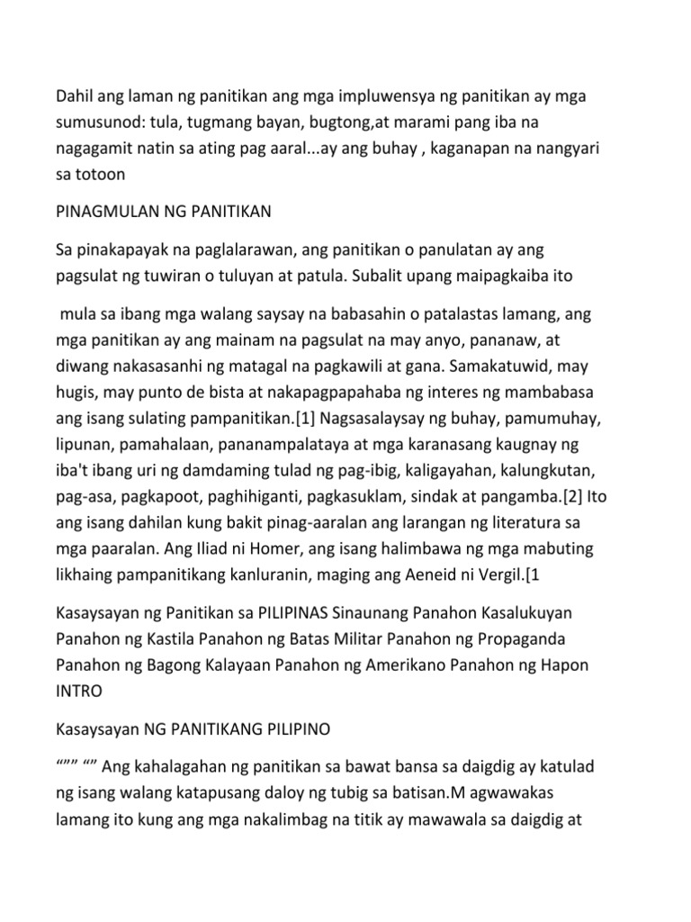 Para sa akin malaki na ang pinagbago ng panitikan ngayon kung ikukumpara noon. Alam na natin ngayon continue reading. Nagbuhat ang panitikan ng Pilipinas mula sa sari-saring mga lipon at pangkat ng mga taong dumating sa mga kapuluan nito.