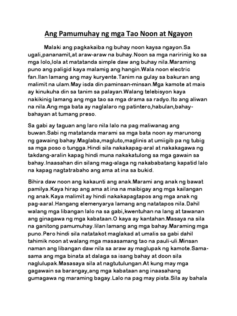 Ang Pamumuhay Ng Mga Tao Noon At Ngayon