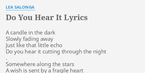 Do You Hear It Lyrics By Lea Salonga A Candle In The
