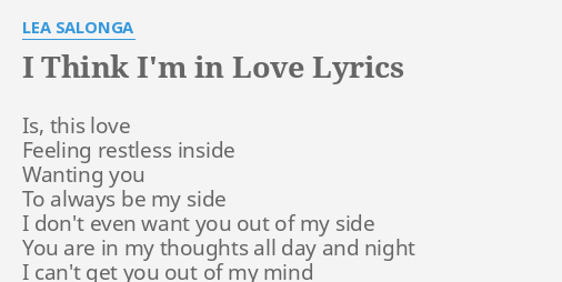 I Think I M In Love Lyrics By Lea Salonga Is This Love Feeling