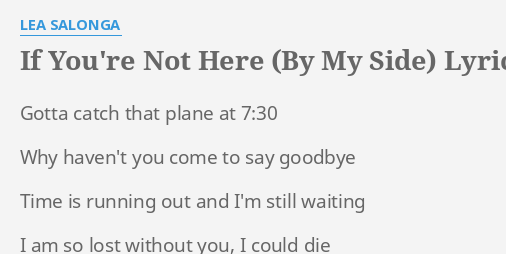 If You Re Not Here By My Side Lyrics By Lea Salonga Gotta Catch That Plane