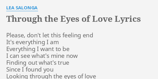Through The Eyes Of Love Lyrics By Lea Salonga Please Don T Let This