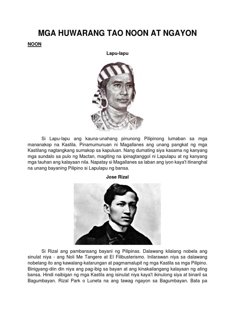 Mga Huwarang Tao Noon At Ngayon Docx