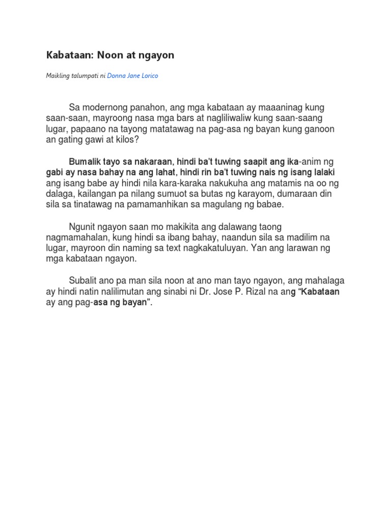 Talumpati Docx Kabataan Noon At Ngayon Sa Modernong Panahon Ang Mga Kabataan Ay Maaaninag Kung Saan Saan Mayroong Nasa Mga Bars At Nagliliwaliw Kung Course Hero