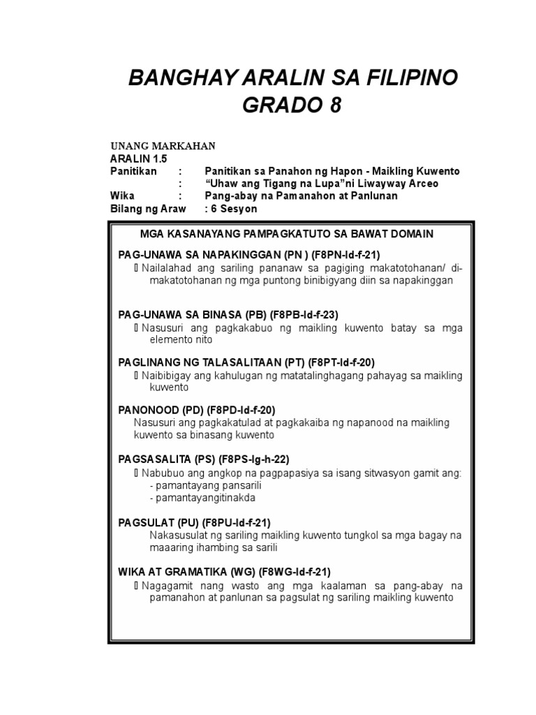 Filipino Activities Mga Kwento Sa Ikalawang Markahan