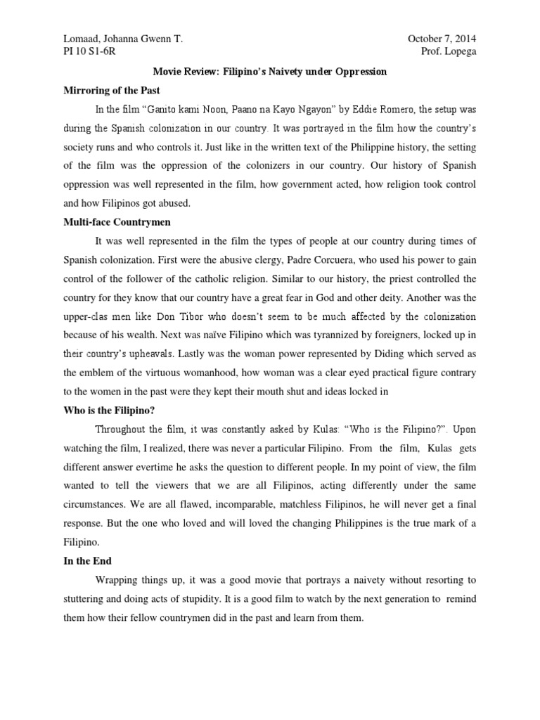 Ganito Kami Noon Paano Kayo Noon Film Reflection Docx