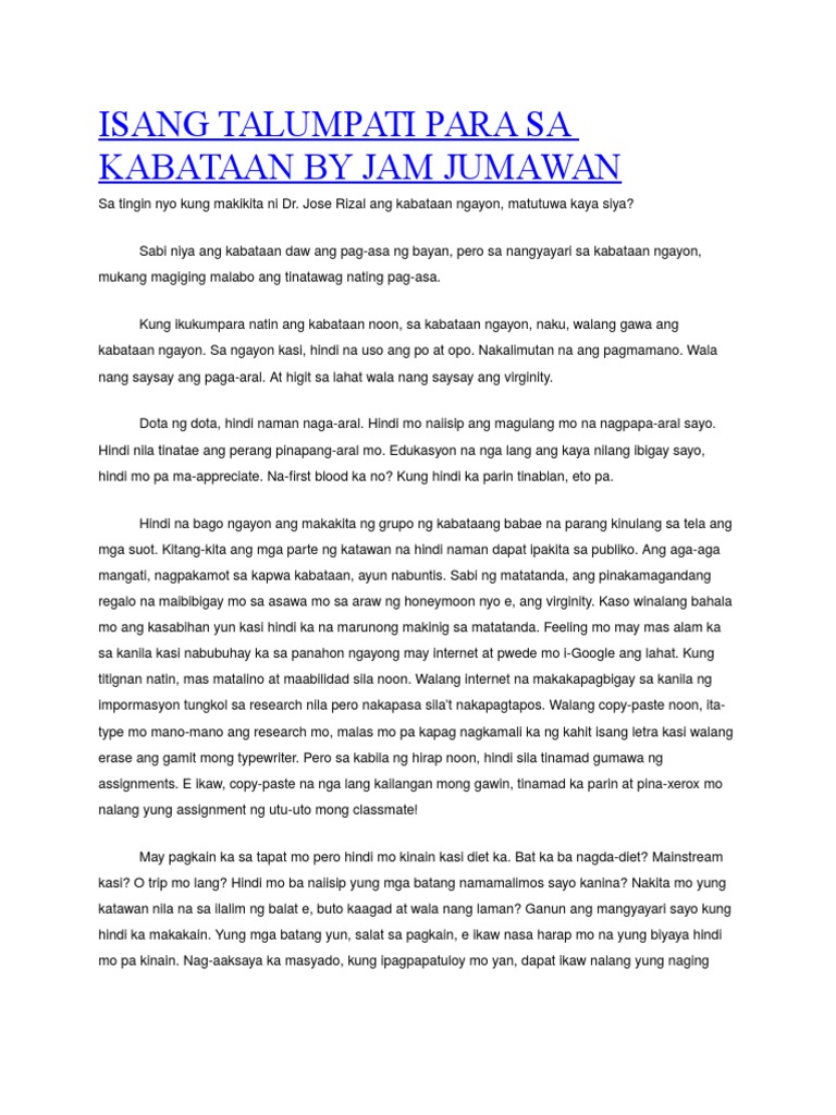 Isang Talumpati Para Sa Kabataan By Jam