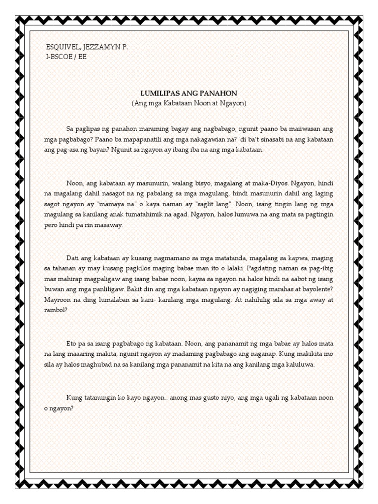 Lumilipas Ang Panahon Kabataan Noon At Ngayon